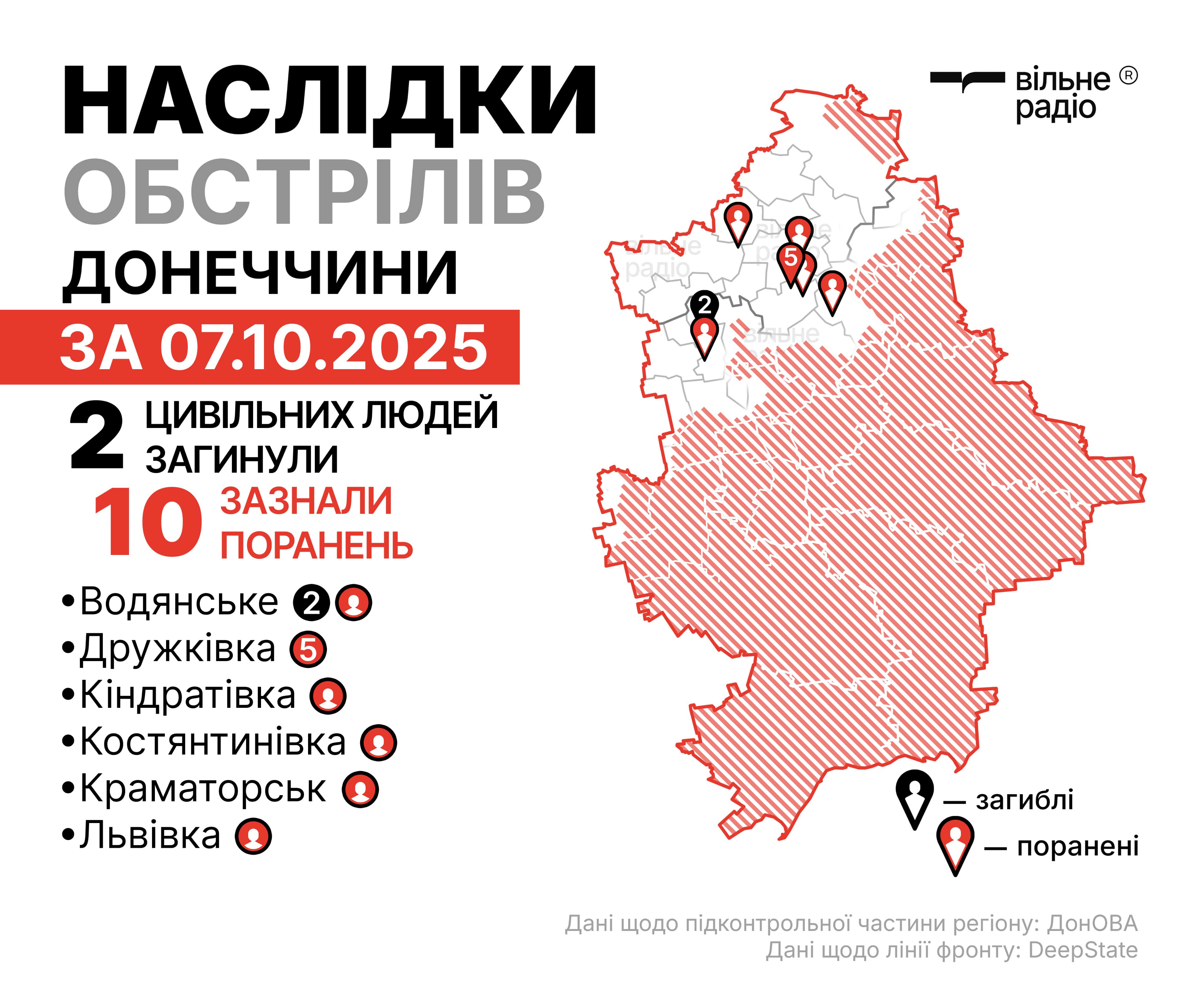 - згідно зі зведенням Генерального штабу ЗСУ, на Лиманському напрямку 7 жовтня російські сили здійснили 12 атак, намагаючись просунутися вперед поблизу Середнього, Шандриголового, Новоселівки, Дерилового, Карпівки та Торського. Українські військові зупинили всі спроби прориву оборони;