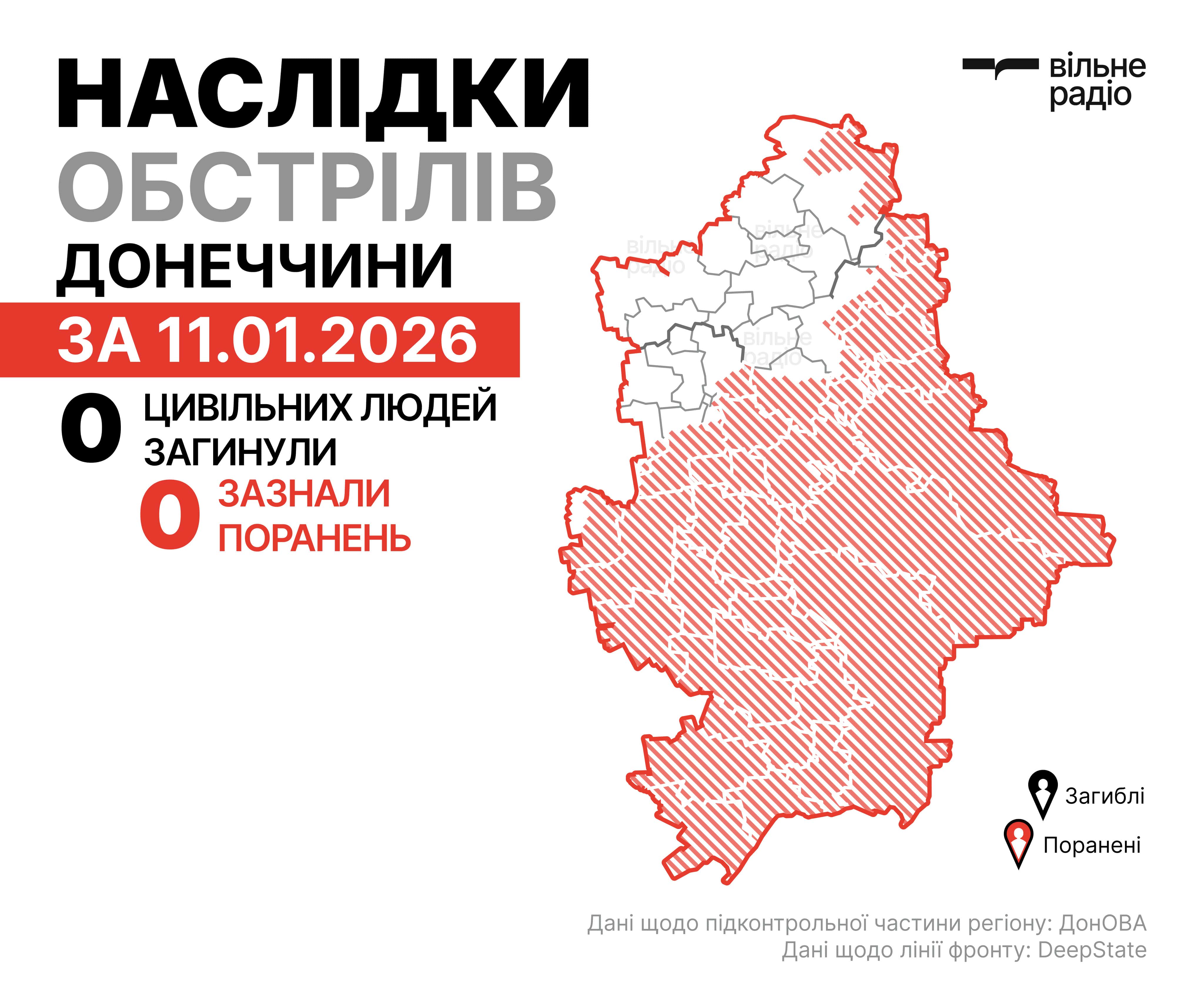 Наслідки російських ударів по Донеччині за 11 січня 2025 року в цифрах. Інфографіка Вільного РадіоНаслідки російських ударів по Донеччині за 11 січня 2026 року. Фото: Донецька ОВАНаслідки російських ударів по Донеччині за 11 січня 2026 року. Фото: Донецька ОВА