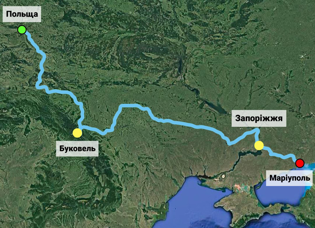Жінка з дитиною та бабусею вирушили у Володарськ, адже звідти був шанс потрапити в один з гуманітарних коридорів до вільної України. Через бойові дії, усі переходи містом родині довелося долати пішки.