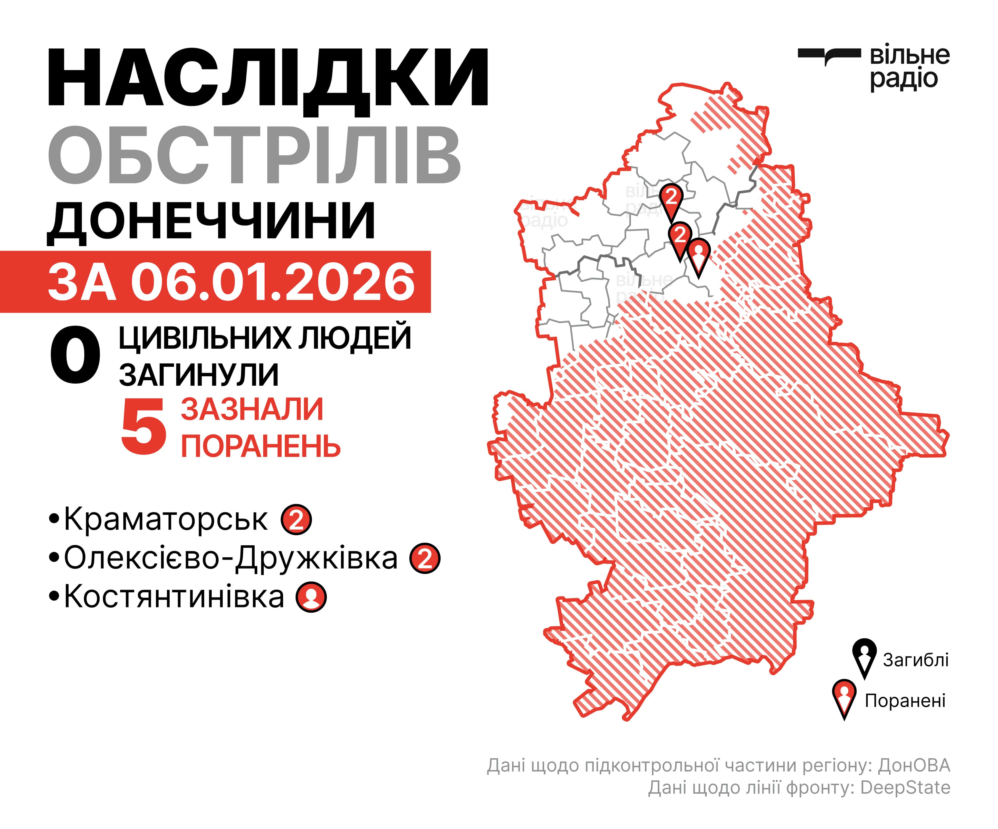 Наслідки російських ударів по Донеччині за 6 січня 2026 року в цифрах. Інфографіка Вільного РадіоНаслідки російських ударів по Донеччині за 6 січня 2026 року. Фото: поліція ДонеччиниНаслідки російських ударів по Донеччині за 6 січня 2026 року. Фото: поліція Донеччини