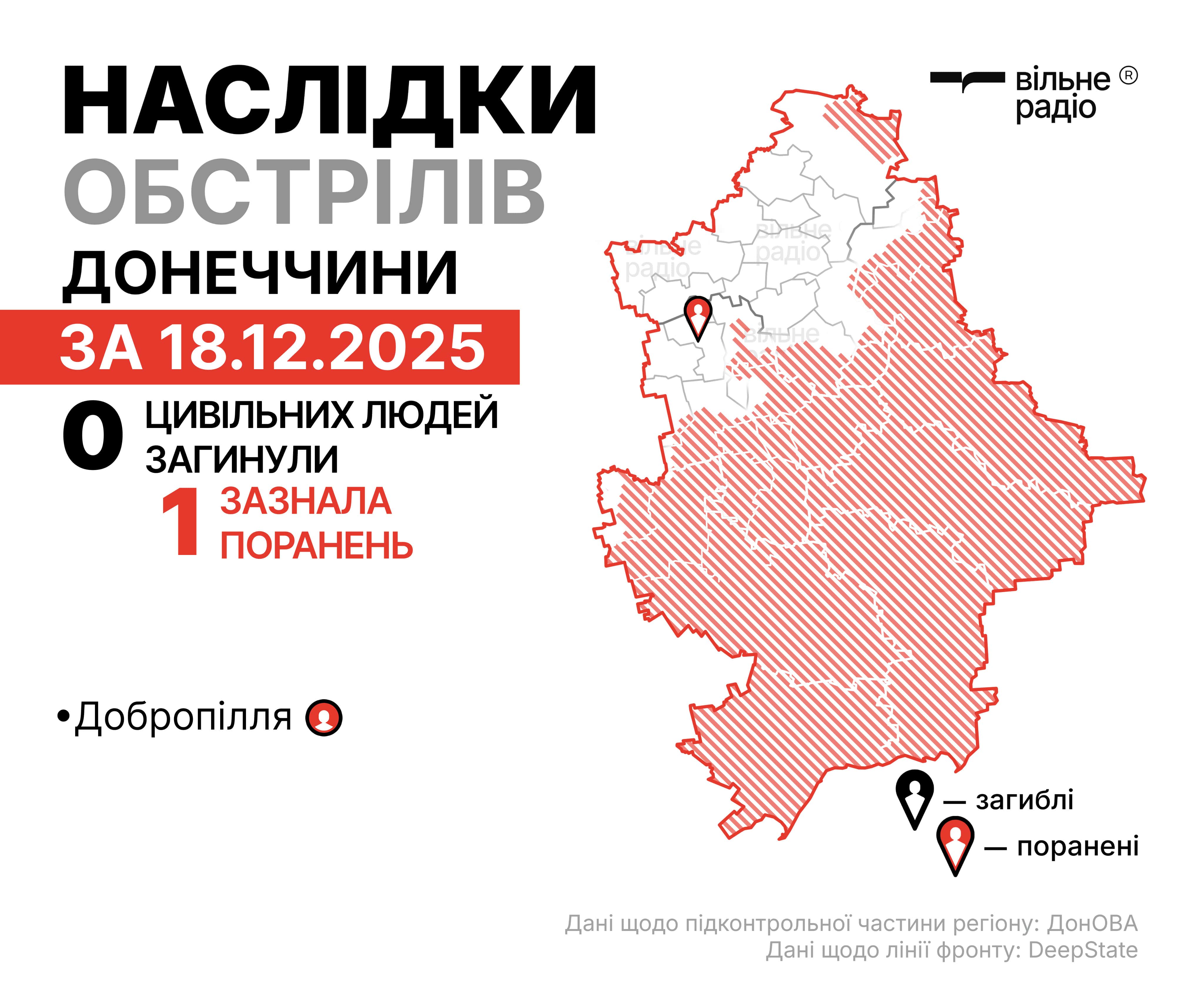 За сутки гибели гражданских на Донетчине не фиксировали, но один гражданский человек получил ранения. Это произошло в Доброполье в результате попадания FPV-дронов.