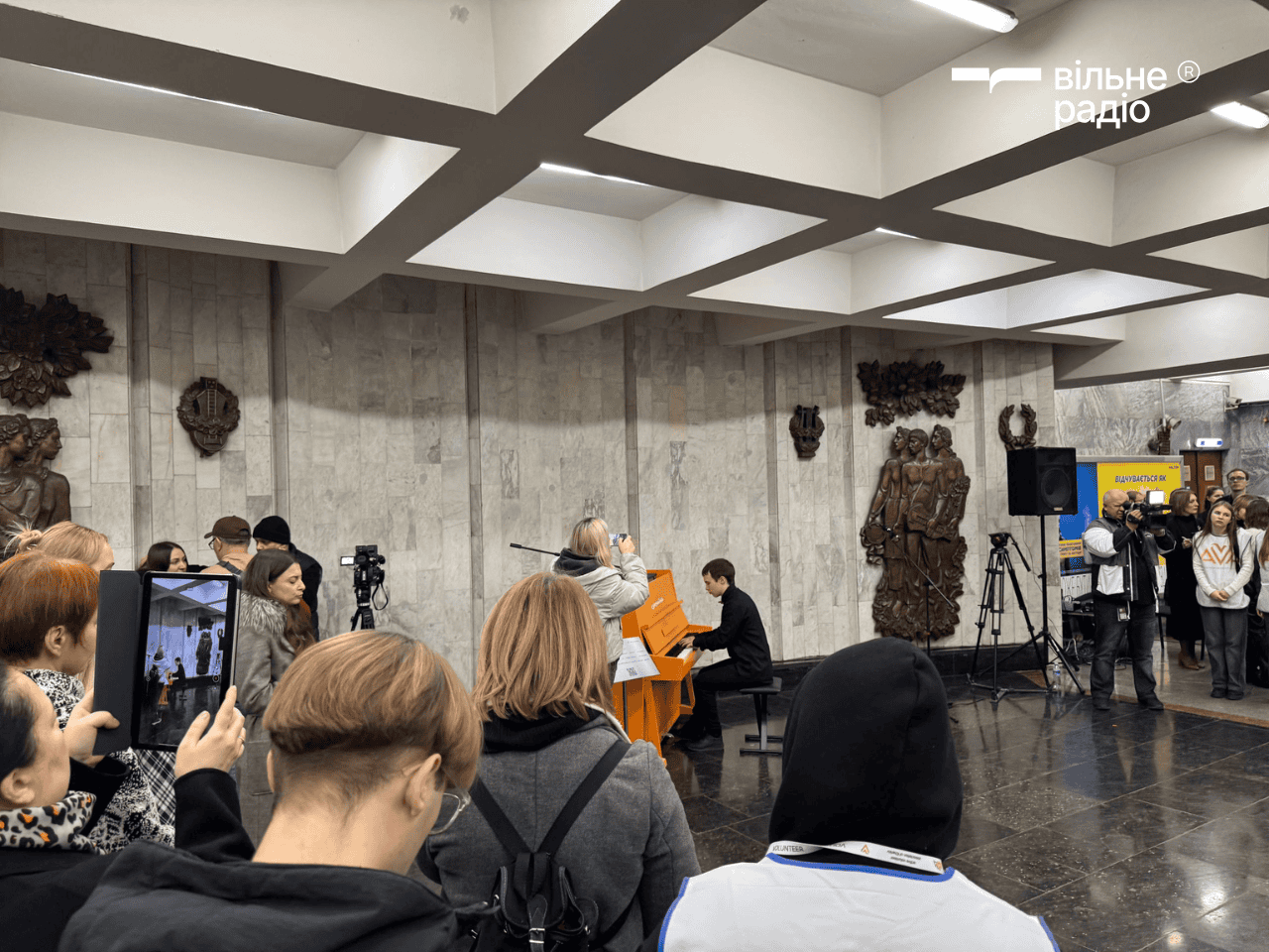 На станції метро “Ярослава Мудрого” в Харкові зіграли концерт на відреставрованому фортепіано “Україна”, яке вивезли з Бахмута. Інструмент тепер залишатиметься на станції постійно.