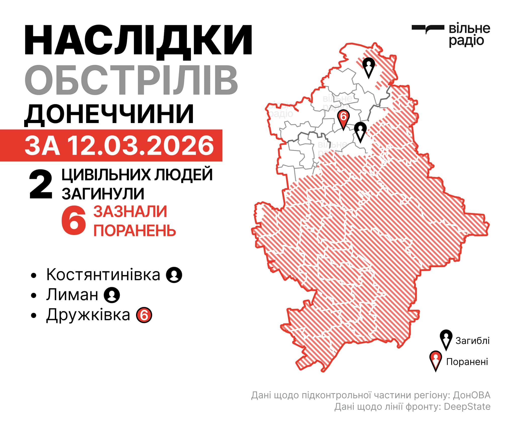 Начальник ДонОВА Вадим Філашкін зазначив, що також російські удари від ранку 12 березня по ранок 13 березня фіксували у Малинівці, Сергіївці, Очеретиному, Староварварівці та Різниківці.