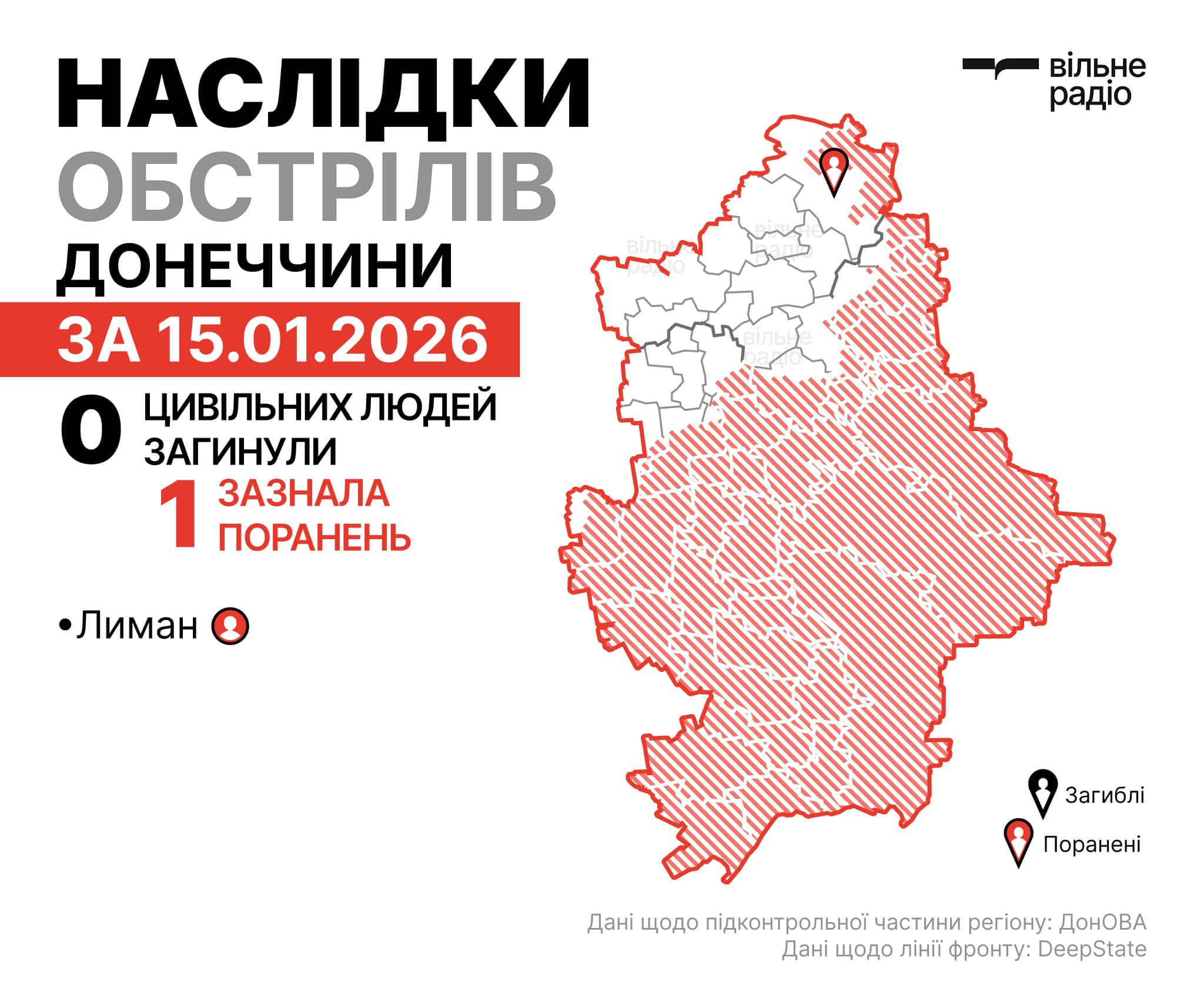 Наслідки російських ударів по Донеччині за 15 січня 2025 року в цифрах. Інфографіка Вільного РадіоНаслідки російських ударів по Донеччині за 15 січня 2026 року. Фото: поліція ДонеччиниНаслідки російських ударів по Донеччині за 15 січня 2026 року. Фото: поліція ДонеччиниНаслідки російських ударів по Донеччині за 15 січня 2026 року. Фото: поліція Донеччини