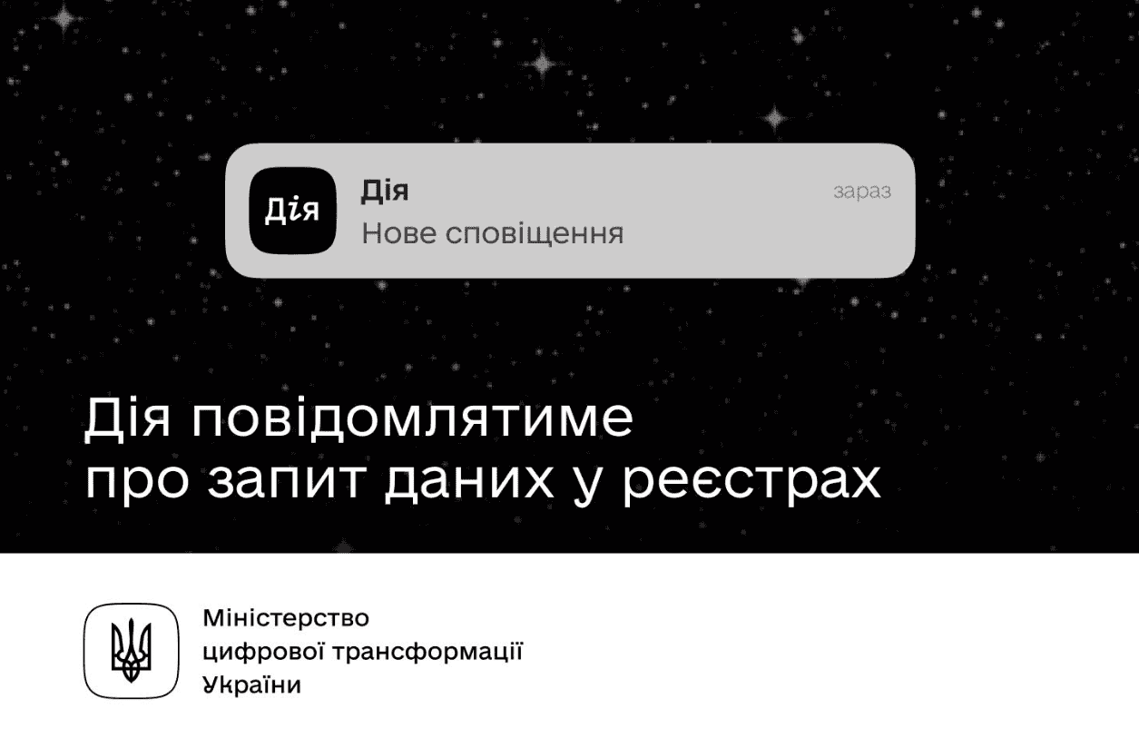 Нова функція у застосунку “Дія” дозволить українцям фіксувати запити державних органів до їхньої інформації в держреєстрах та надсилати сповіщення з деталями про кожен наданий доступ.